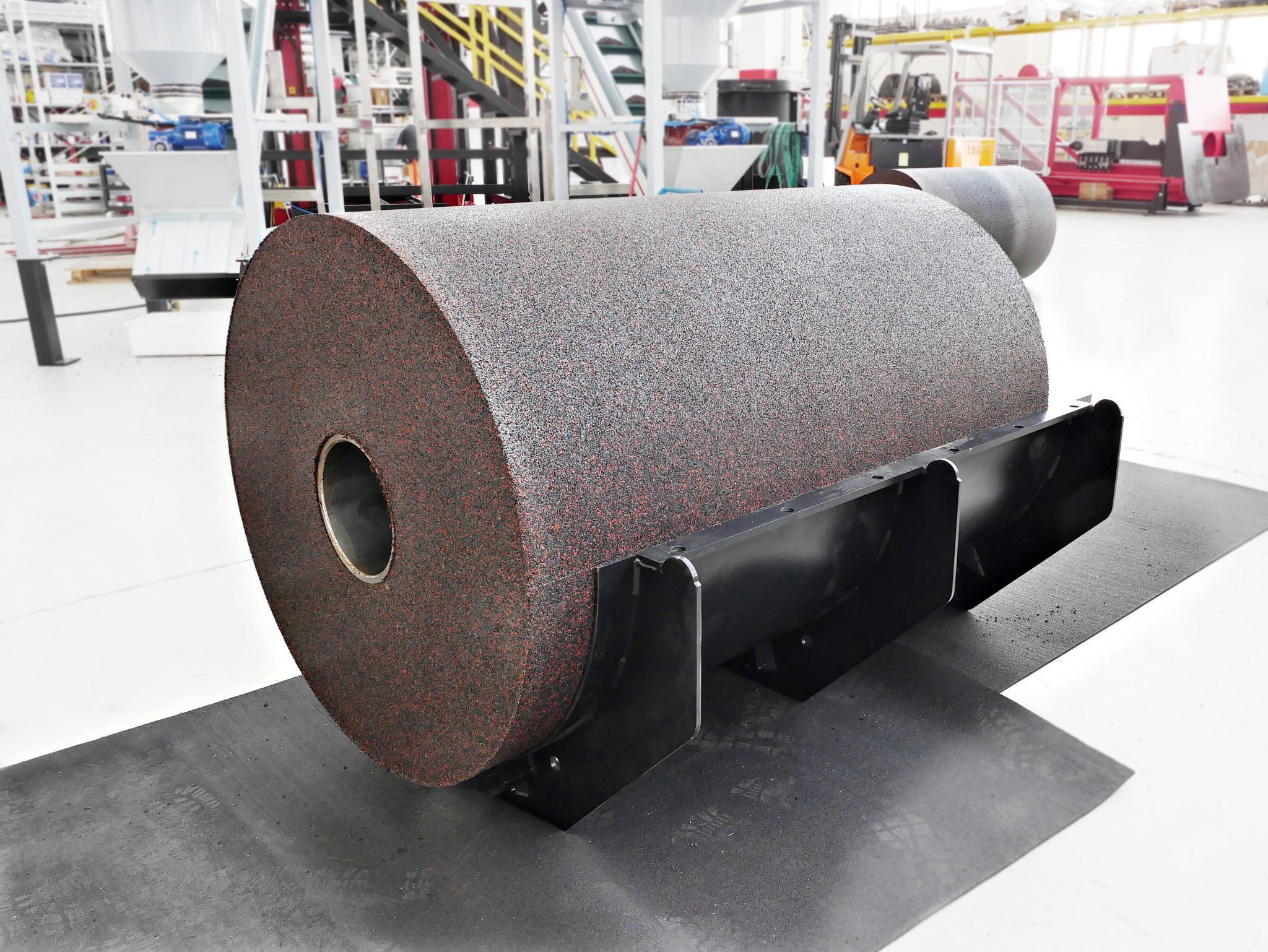 Starting with rubber granulate coming out of the tyre shredding process, this equipment produces rubber cylinders of a sound-absorbing and vibration-damping material. Some of the applications of the output product include the use as flooring in gyms and the use in the construction sector to reduce spread of noise and vibration.